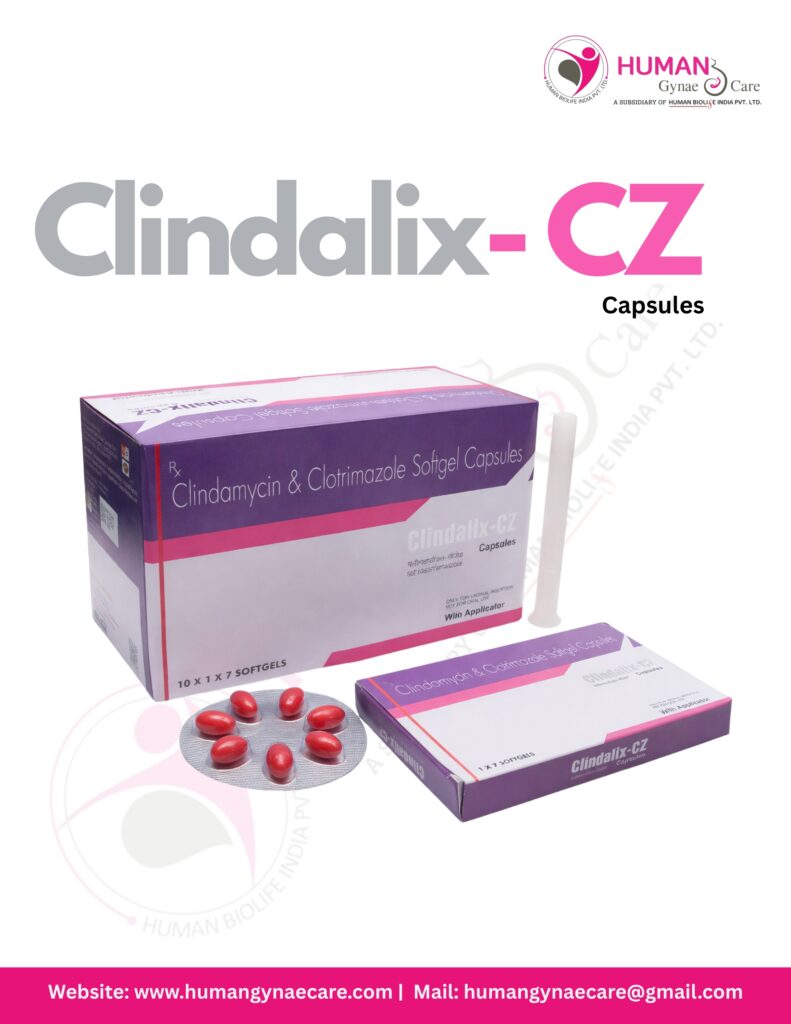 Clindalix-CZ capsules with powerful formulation of Clindamycin 100mg + Clotrimazole 100mg + Vaginal Suppositories With applicator are specially designed for the effective management of mixed vaginal infections. This synergistic combination offers broad-spectrum coverage against both bacterial and fungal pathogens, ensuring comprehensive care.