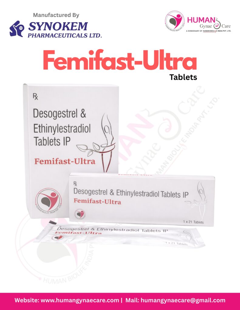 Femifast Ultra tablets with a powerful formulation of Desogestrel & Ethinylestradiol are used as an oral contraceptive to prevent pregnancy. They also help regulate menstrual cycles, reduce menstrual discomfort, and support hormonal balance in women.
